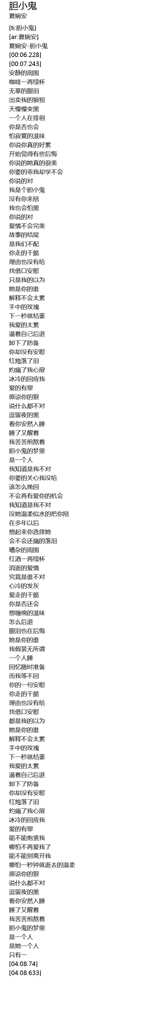 | [00:02.622] | 夏婉安-胆小鬼 |