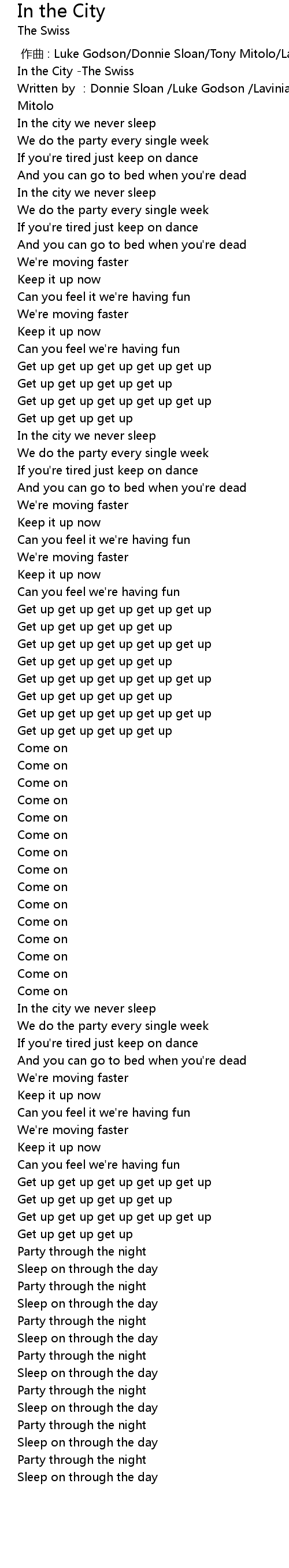| [00:15.870] | Written by :Donnie Sloan /Luke Godson /Lavinia De Santoli /Tony Mitolo |