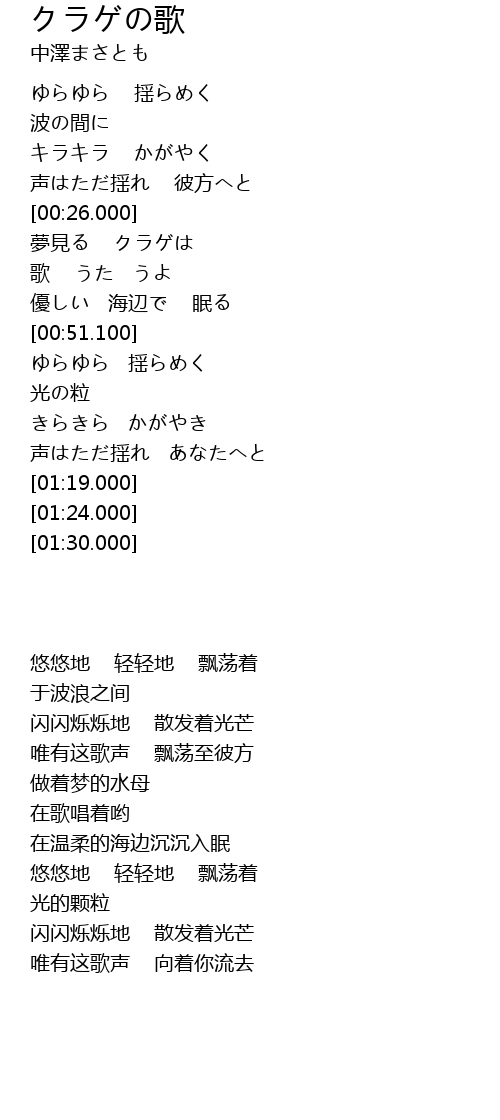 | [00:17.000] | 声はただ揺れ 彼方へと |
