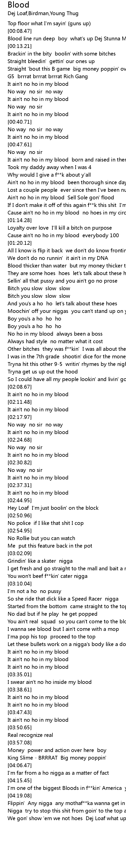| [02:28.44] | It ain't no ho in my blood |