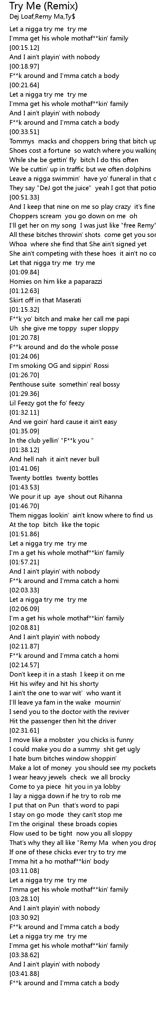 | [02:03.94] | Let a nigga try me try me |