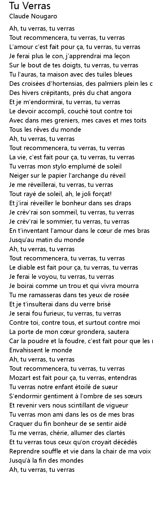 | Je cre v' rai son sommeil, tu verras, tu verras | |