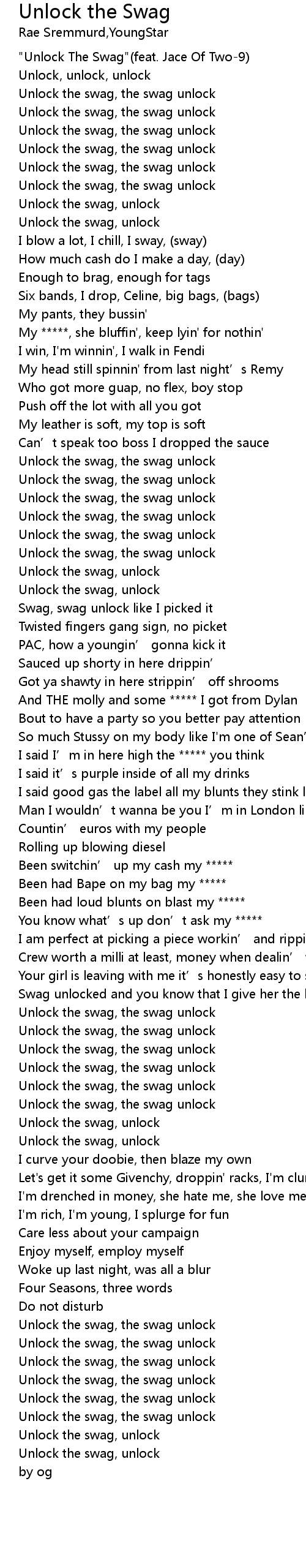 | [04:23.62] | Unlock the swag, the swag unlock |