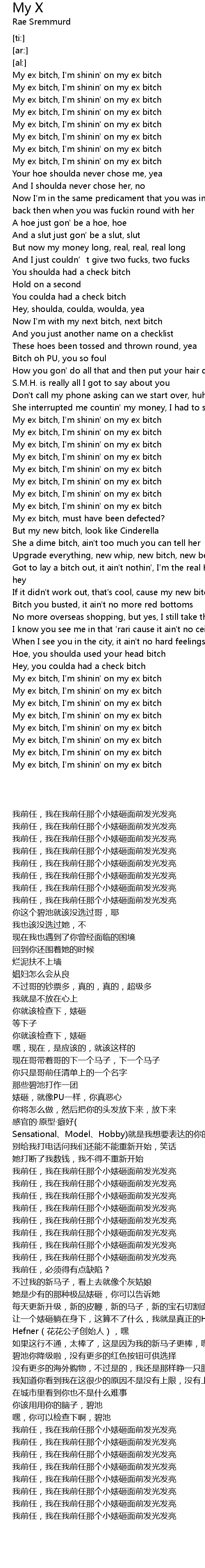 | [00:26.17] | My ex bitch, I' m shinin' on my ex bitch |