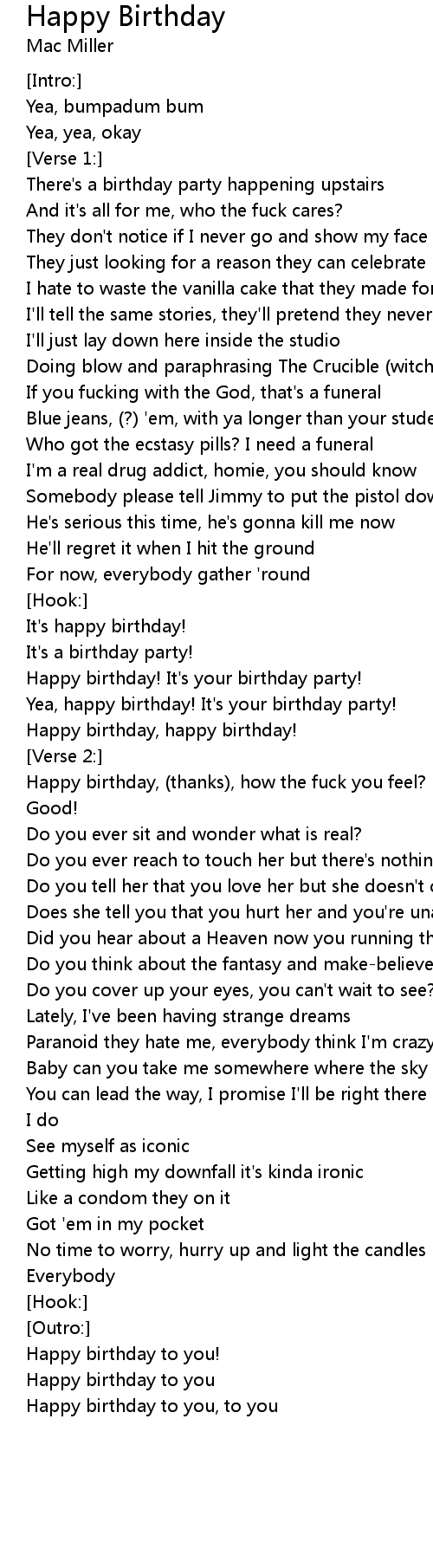 Happy birthday, (thanks), how the fuck you feel? |