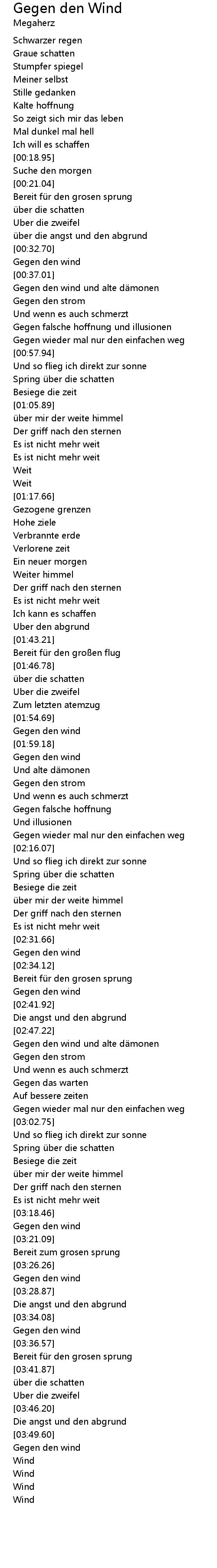 | [00:35.15] | Gegen den wind |