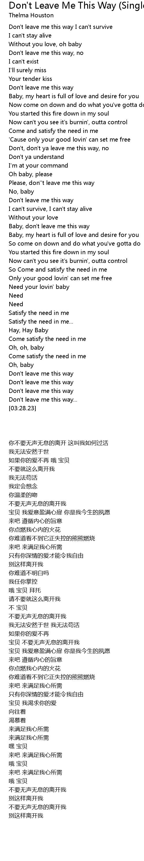 Don't leave me this way I can't survive |