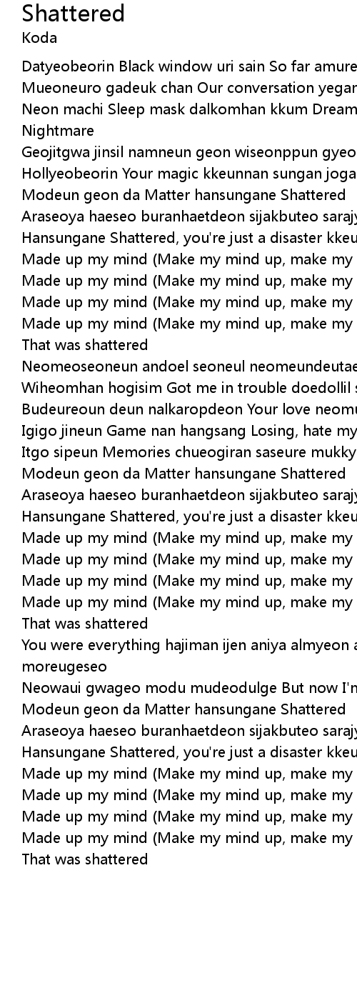 | You were everything hajiman ijen aniya almyeon alsurok eoryeowo deoneun jal moreugeseo | |