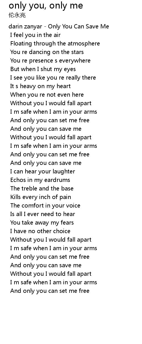 | And only you can save me | |