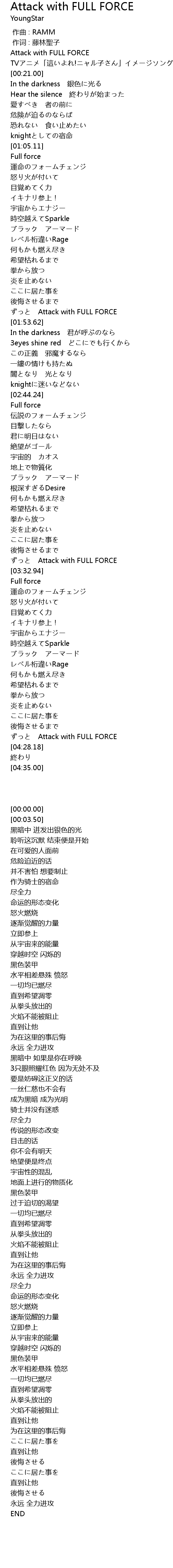 | [04:19.62] | ずっと Attack with FULL FORCE |