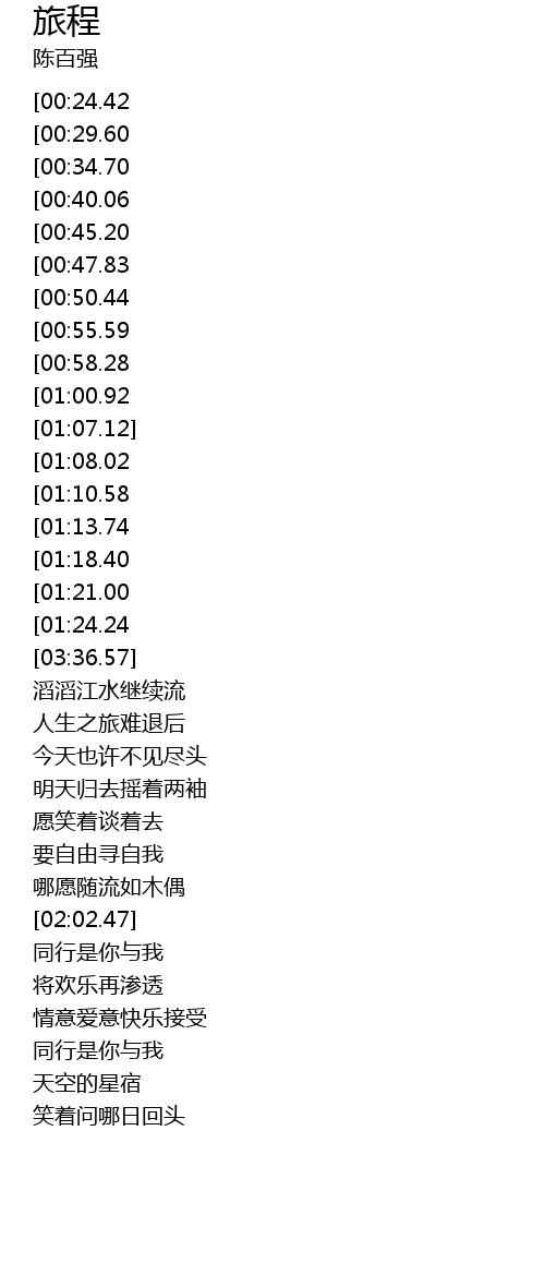| [02:16.34][00:29.60] | 人生之旅难退后 |