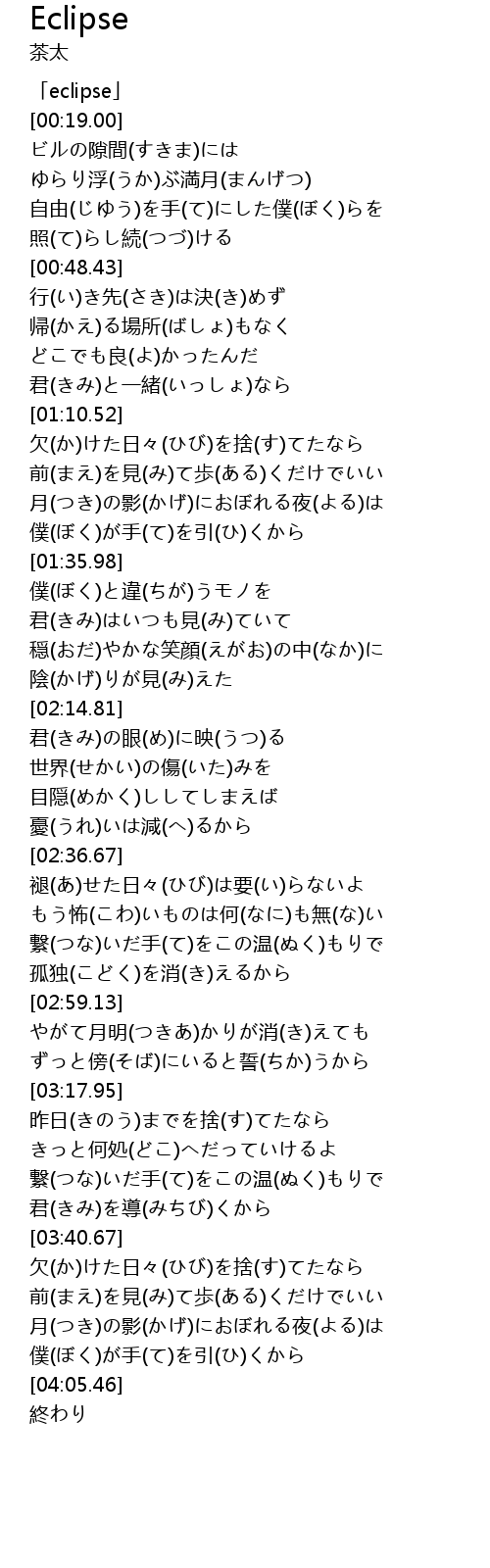 | [00:00.00] | 「eclipse」 |