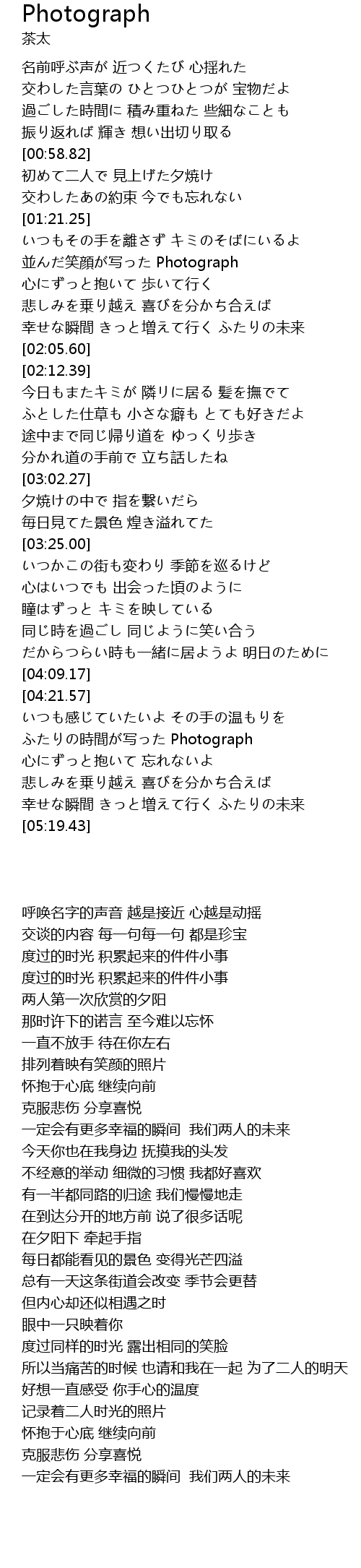 | [04:41.97] | ふたりの時間が写った Photograph |