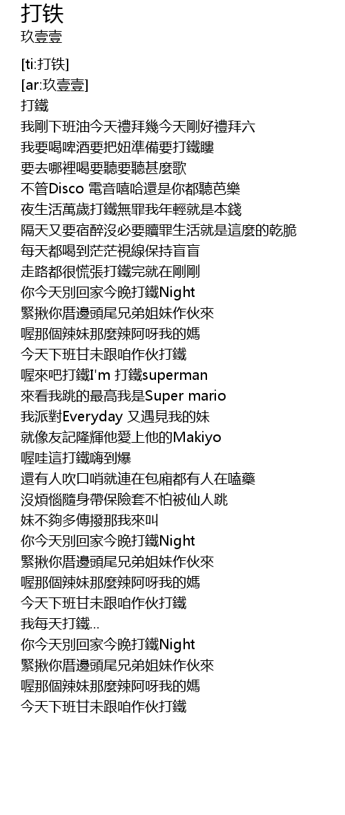 | [01:22.301] | 喔來吧打鐵I'm 打鐵superman |