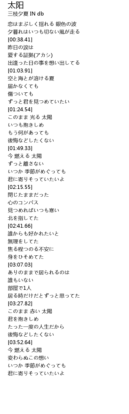 | [03:54.51] | 今 燃える 太陽 |