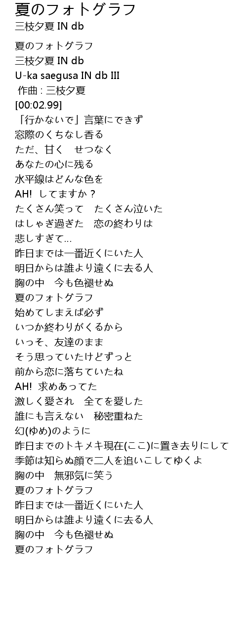 | [02:28.22] | 夏のフォトグラフ |