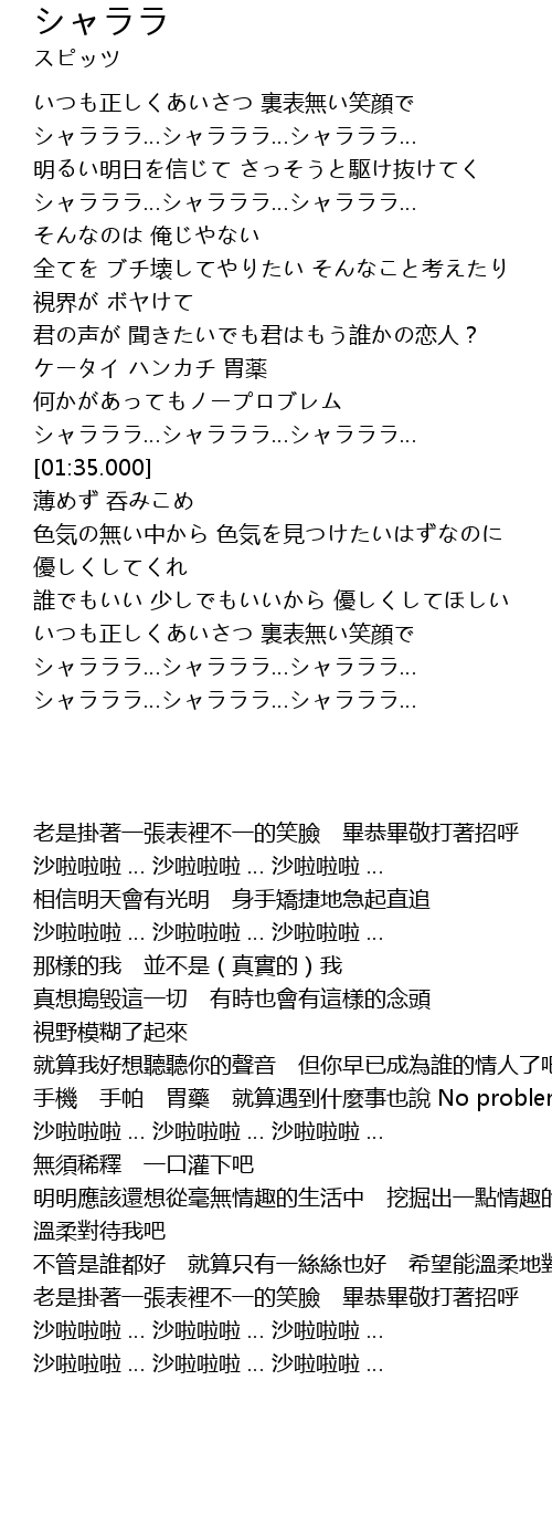 | [02:46.000] | シャラララ…シャラララ…シャラララ… |