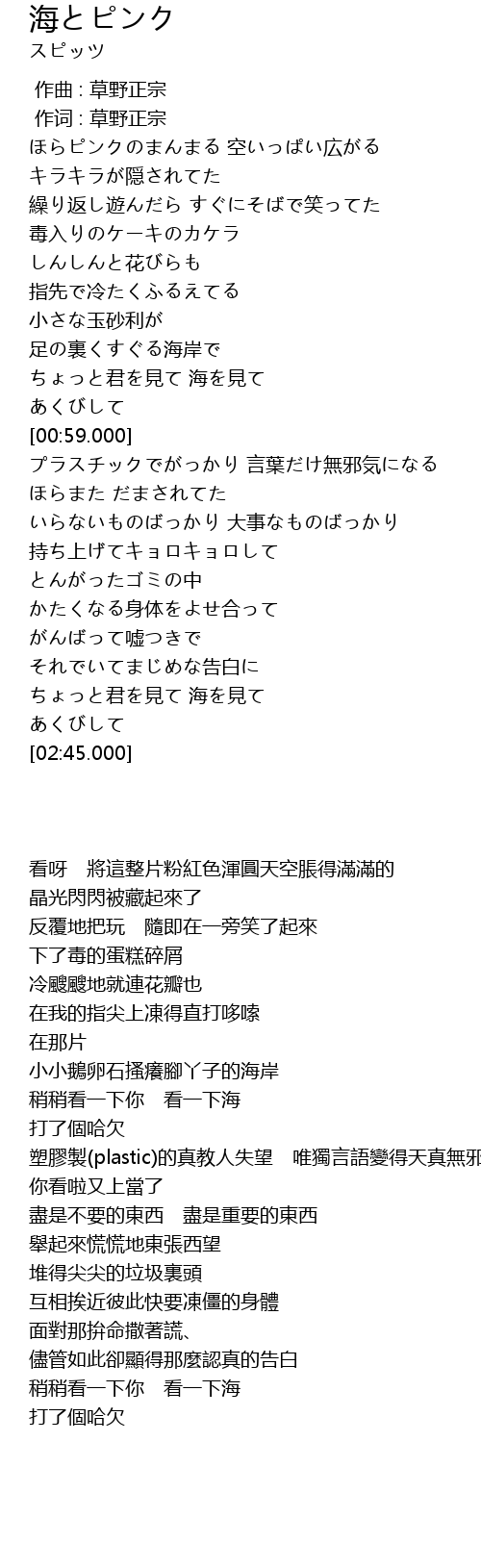 | [02:33.750] | ちょっと君を見て 海を見て |