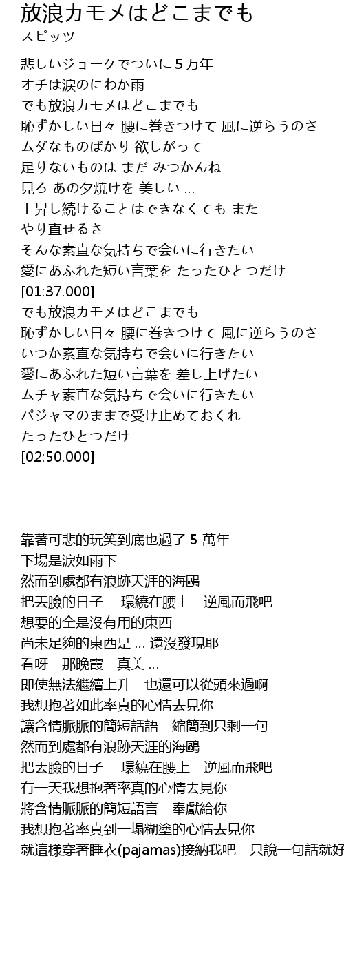 | [01:52.000] | でも放浪カモメはどこまでも |