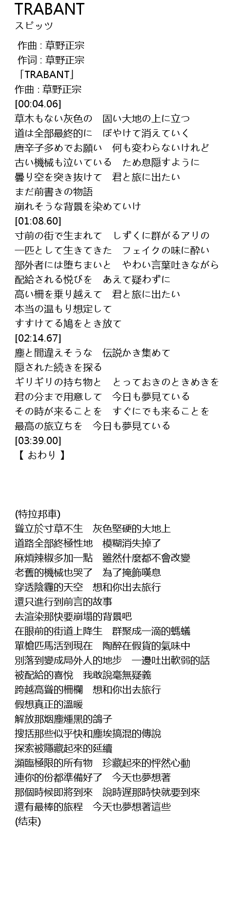 | [00:43.87] | 曇り空を突き抜けて 君と旅に出たい |