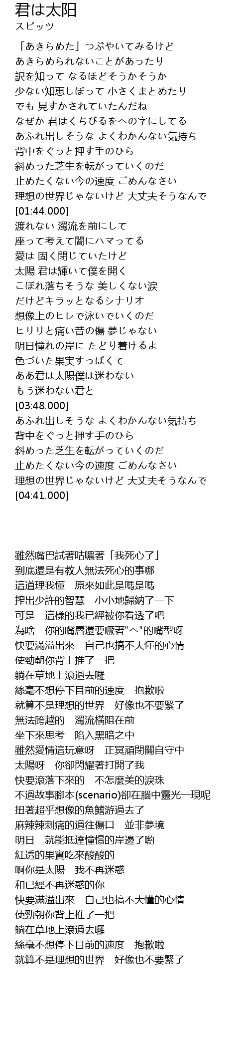 | [03:21.900] | ああ君は太陽僕は迷わない |
