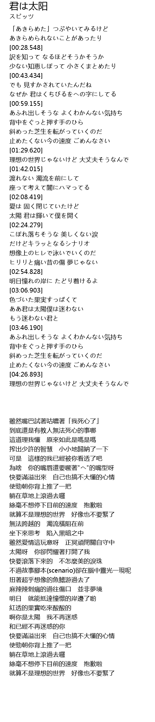 | [02:16.888] | 太陽 君は輝いて僕を開く |