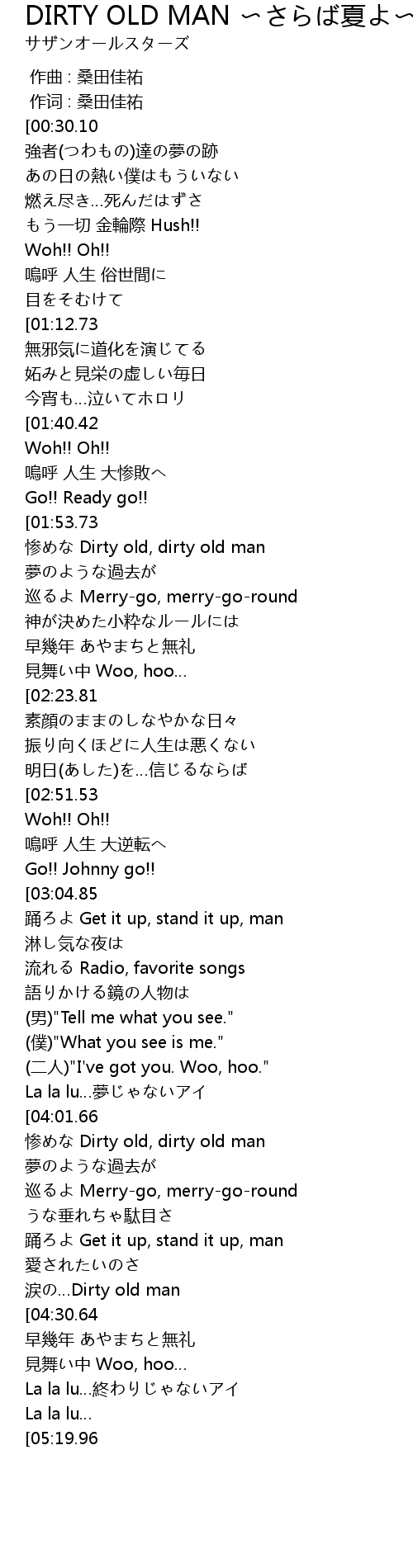 | [04:26.38] | 涙の…Dirty old man |