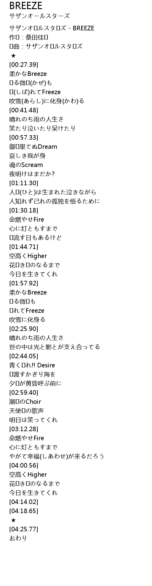 | [00:00.00] | サザンオ�ルスタ�ズ - BREEZE |