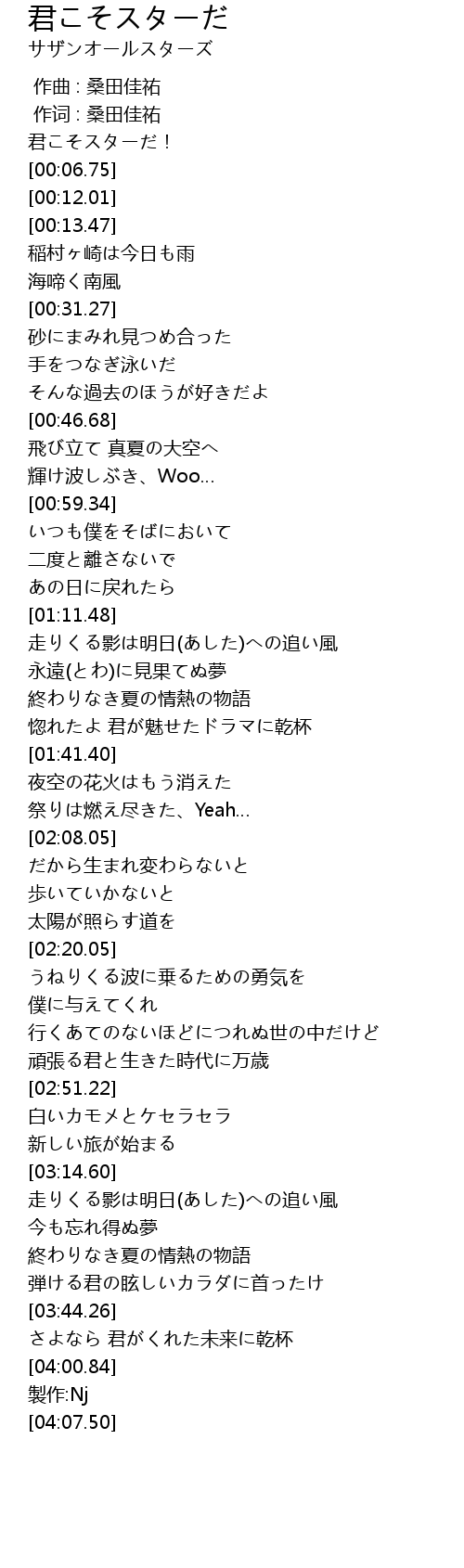 | [00:00.00] | 作曲 : 桑田佳祐 |