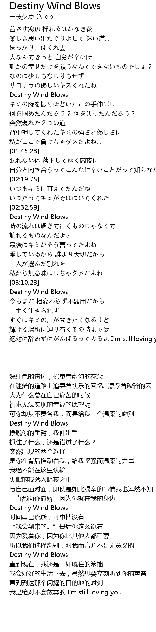 | [03:26.24] | Destiny Wind Blows |