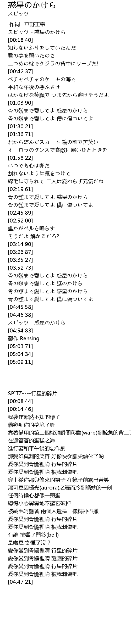 | [04:47.21] | スピッツ - 惑星のかけら |