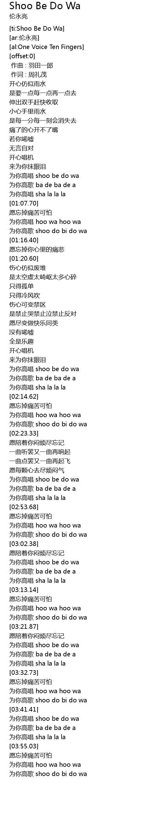| [00:59.97] | 为你高唱 shoo be do wa |