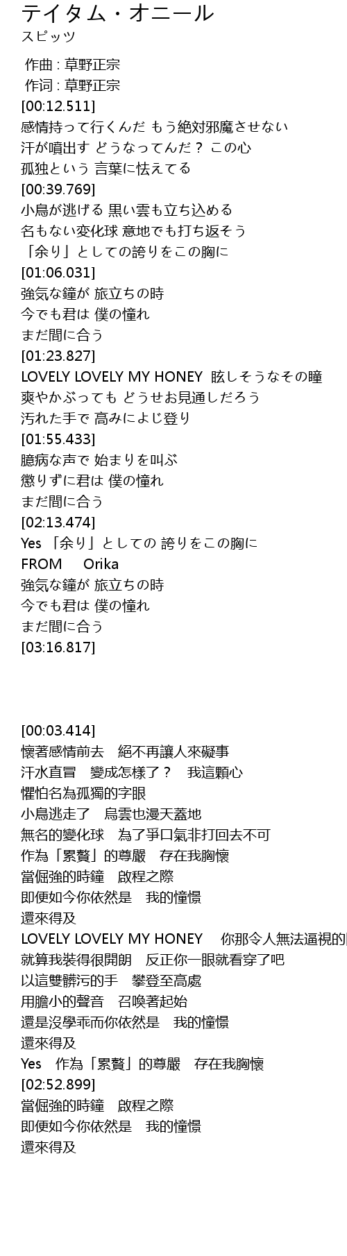 | [00:01.00] | 作词 : 草野正宗 |
