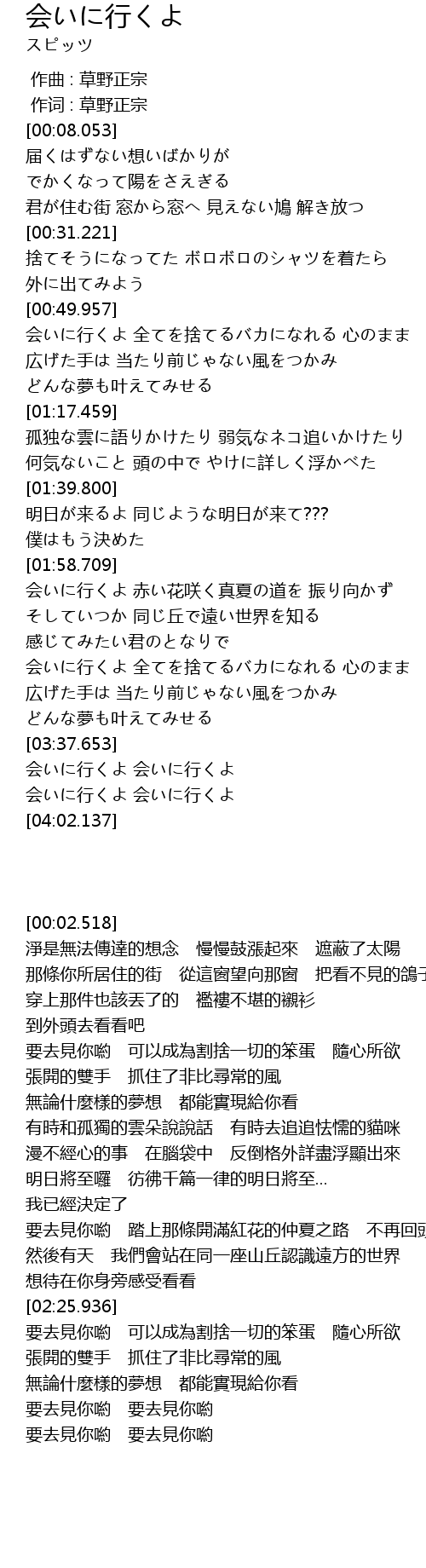 | [03:38.075] | 会いに行くよ 会いに行くよ |