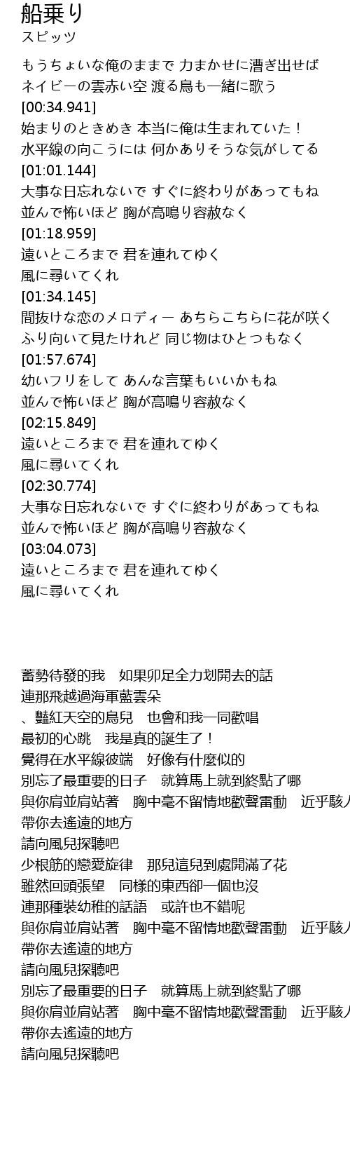 | [00:53.360] | 水平線の向こうには 何かありそうな気がしてる |