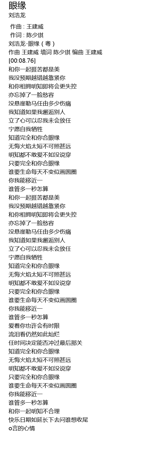 | [00:00.19] | 刘浩龙-眼缘(粤) |