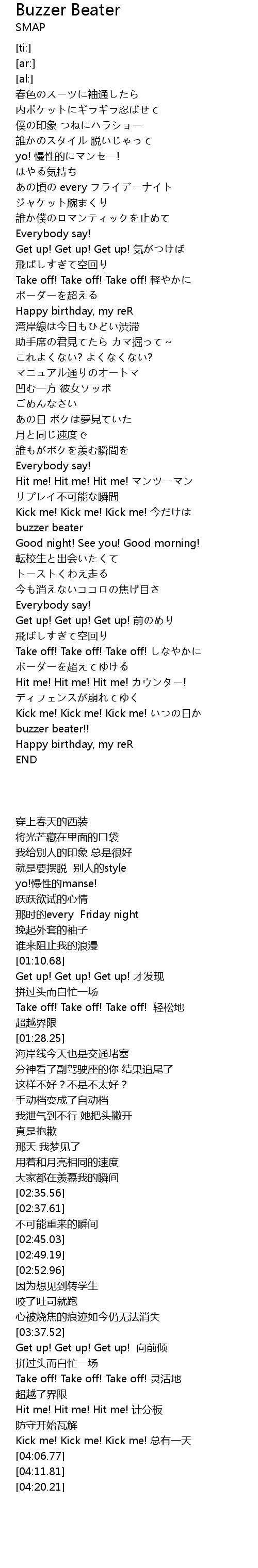 | [03:39.57] | Get up! Get up! Get up! qian |