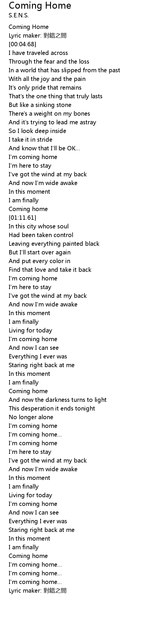 | [00:52.25] | I'm coming home |