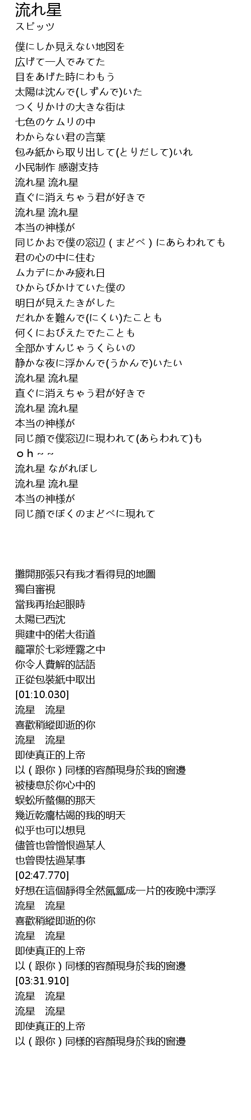 | [03:00.660] | 流れ星 流れ星 |