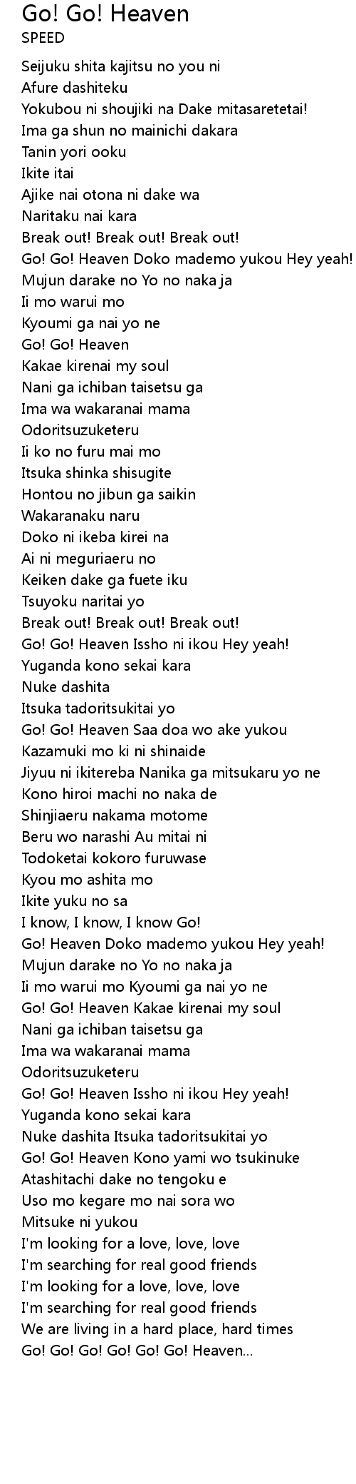 Go! Go! Heaven Issho ni ikou Hey yeah! |