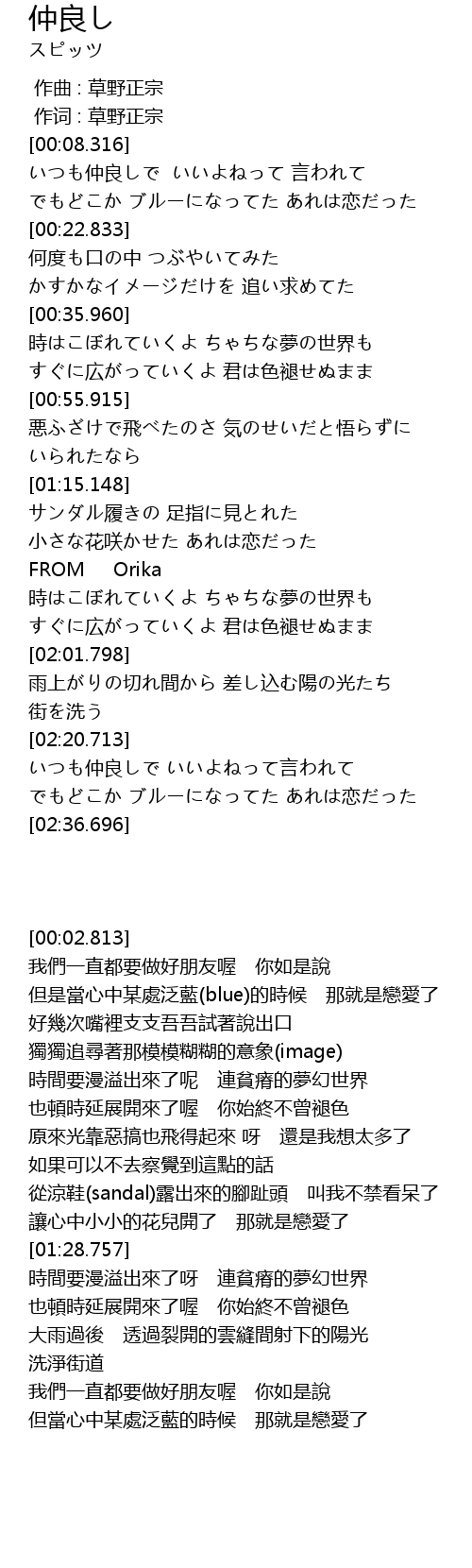 | [02:22.257] | いつも仲良しで いいよねって言われて |