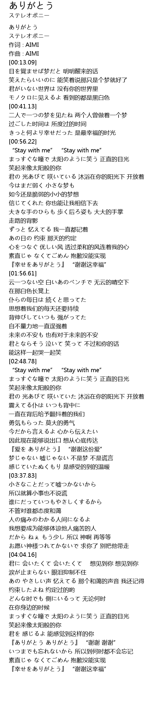 | [04:41.77] | 『ありがとう ありがとう』 “谢谢 谢谢” |