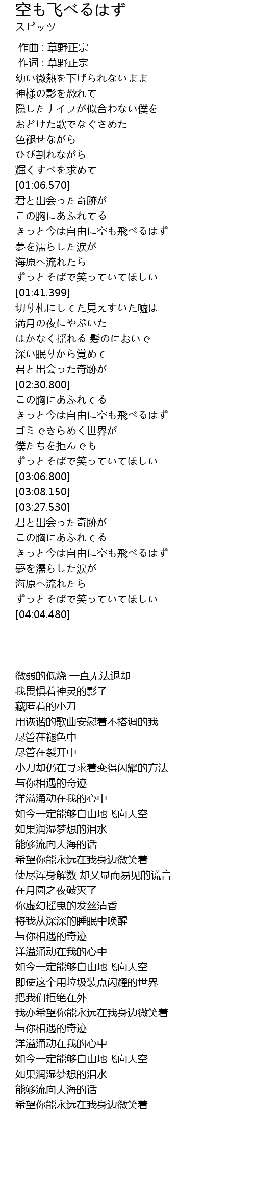 | [02:39.190] | きっと今は自由に空も飛べるはず |
