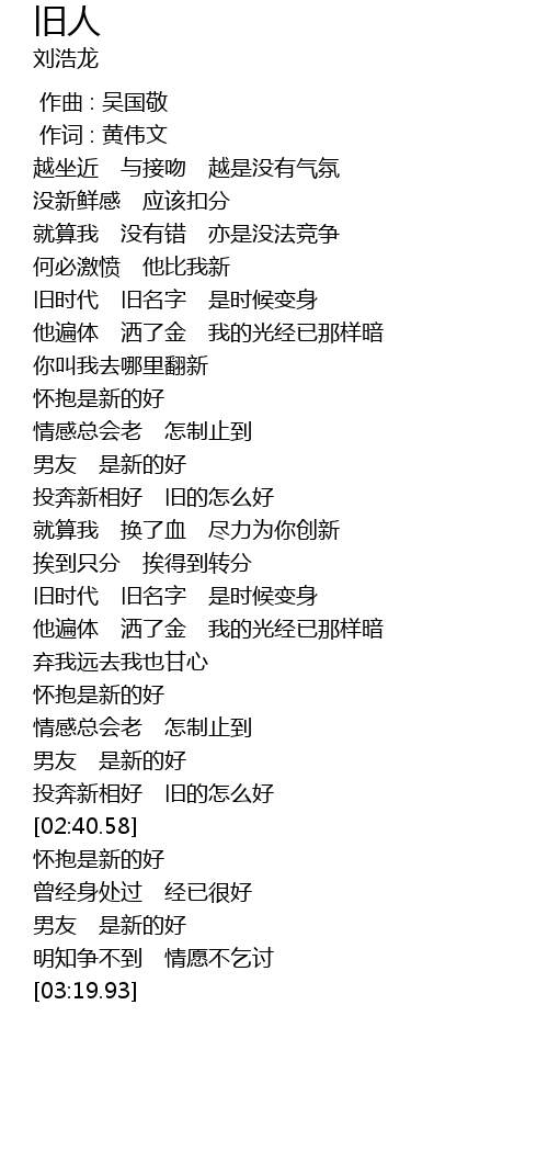 | [02:25.24] | 投奔新相好 旧的怎么好 |