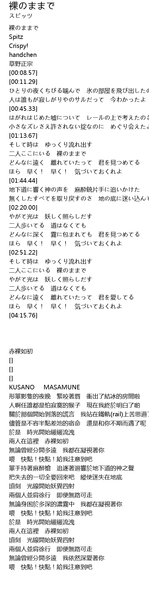 | [03:38.83] | 二人ここにいる 裸のままで |