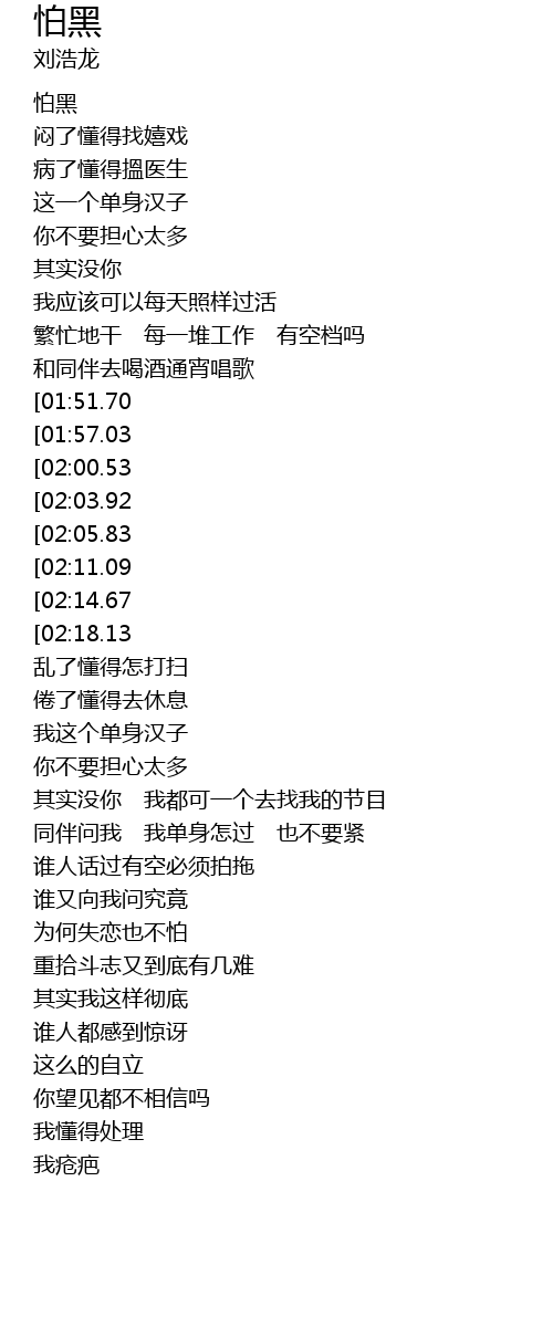| [03:18.03][02:18.13][01:04.18] | 寂寞多可怕 我都不怕 |