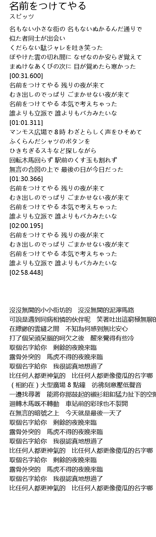 | [02:28.181] | 名前をつけてやる 残りの夜が来て |