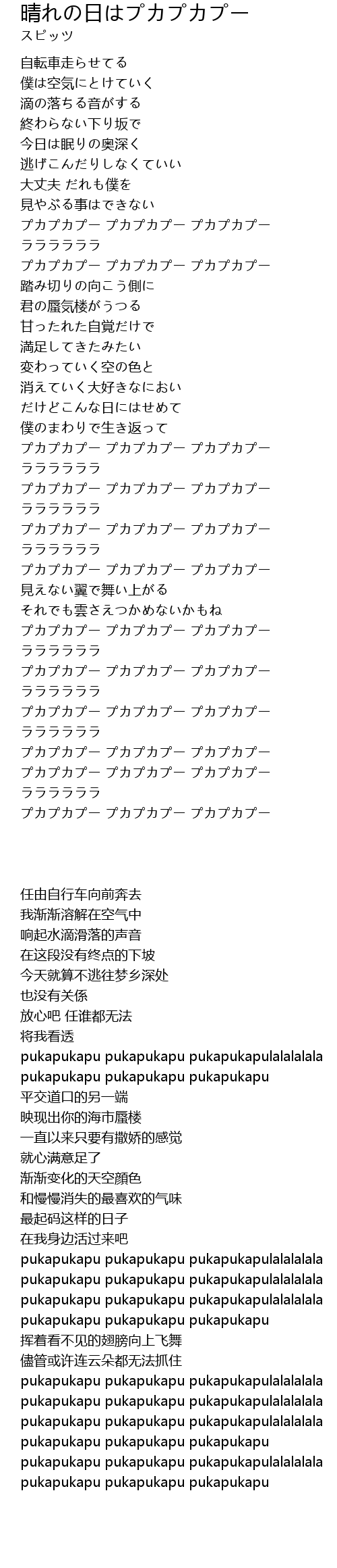 | [01:18.000] | プカプカプー プカプカプー プカプカプー |