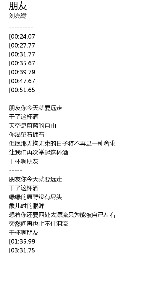 | [03:23.81][00:51.65] | 干杯啊朋友 |