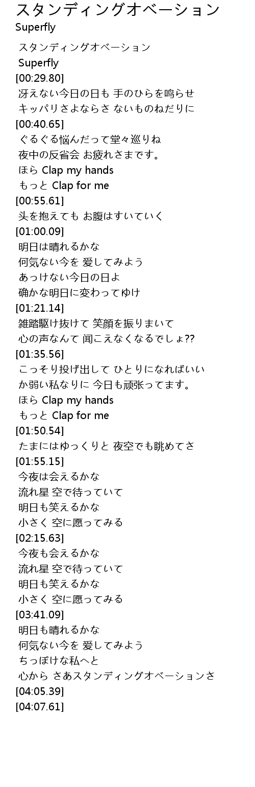 | [03:55.77] | 心から さあスタンディングオベーションさ |